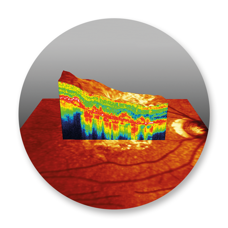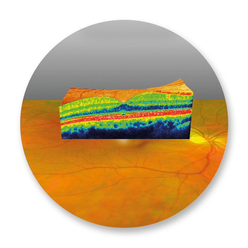 Die OCT (aus dem Englischen: optical coherence tomography) ist eine Spezialuntersuchung der Netzhaut mittels eines schwachen Laserlichtes. Sie liefert Schichtbildaufnahmen Ihrer Netzhaut. Die Auflösung der dabei gewonnenen Bilder ist so hoch, dass man die einzelnen Netzhautschichten differenzieren kann. Dadurch ist es bereits in einem sehr frühen Stadium möglich, Veränderungen der Makula sichtbar zu machen und ggf. zu behandeln. Besonders bei der Diagnose und der Therapieüberwachung der altersbedingten Makuladegeneration (AMD) oder bei Netzhautveränderungen durch Diabetes ist die OCT nicht mehr wegzudenken. Auch bei der Diagnostik des Glaukoms (grüner Star) kann die OCT zur Früherkennung wie zur Verlaufskontrolle sehr gut eingesetzt werden.