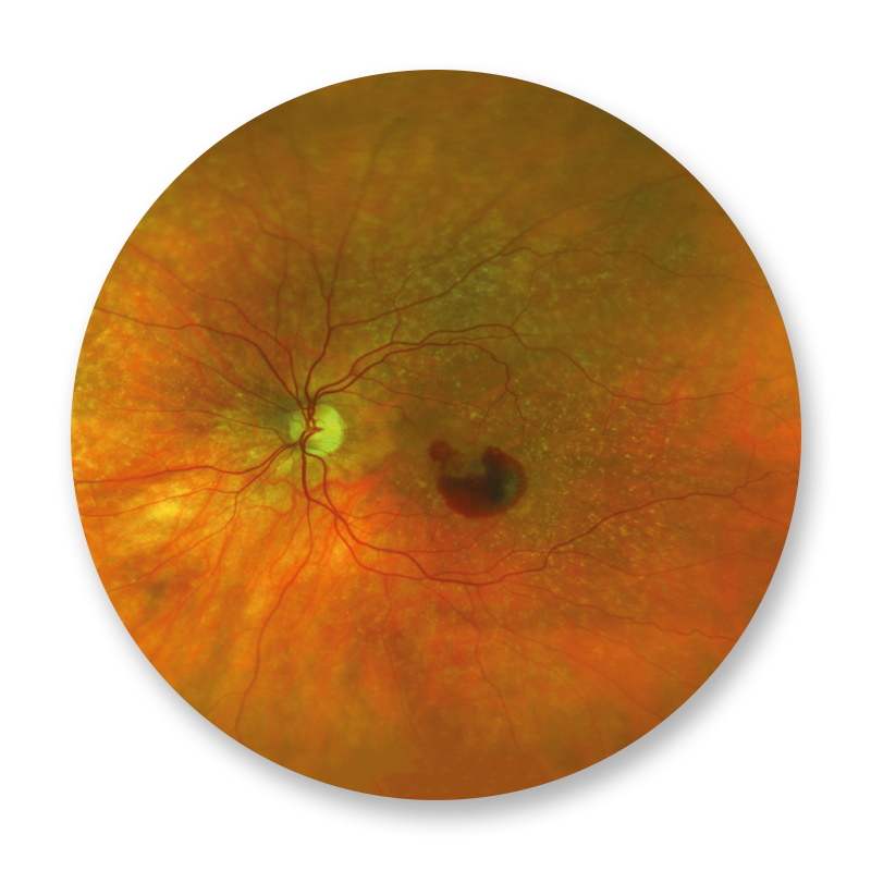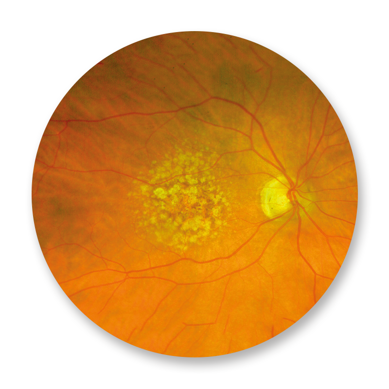 Unter dem Begriff Maculadegeneration wird eine Gruppe von Erkrankungen des Auges zusammengefasst, die die Macula lutea („der Punkt des schärfsten Sehens“) – auch „Gelber Fleck“ genannt – der Netzhaut betreffen und mit einem allmählichen Funktionsverlust der dort befindlichen Gewebe einhergehen. Die weitaus häufigste Form der Maculadegeneration ist die altersbedingte (oder senile) Maculadegeneration (AMD). Vor der Therapie muss zwischen der feuchten und der trockenen Form der Maculadegeneration unterschieden werden. Hauptrolle spielt hier die OCT Untersuchung und die Fluoreszenzangiographie. Die feuchte Form kann zu einem sehr schnellen Verlust der Sehkraft führen. Sie wird heute durch intravitreale operative Medikamentengaben (IVOM) von Anti-VEGF-Medikamenten (z. B. Avastin, Lucentis, Eylea) behandelt.